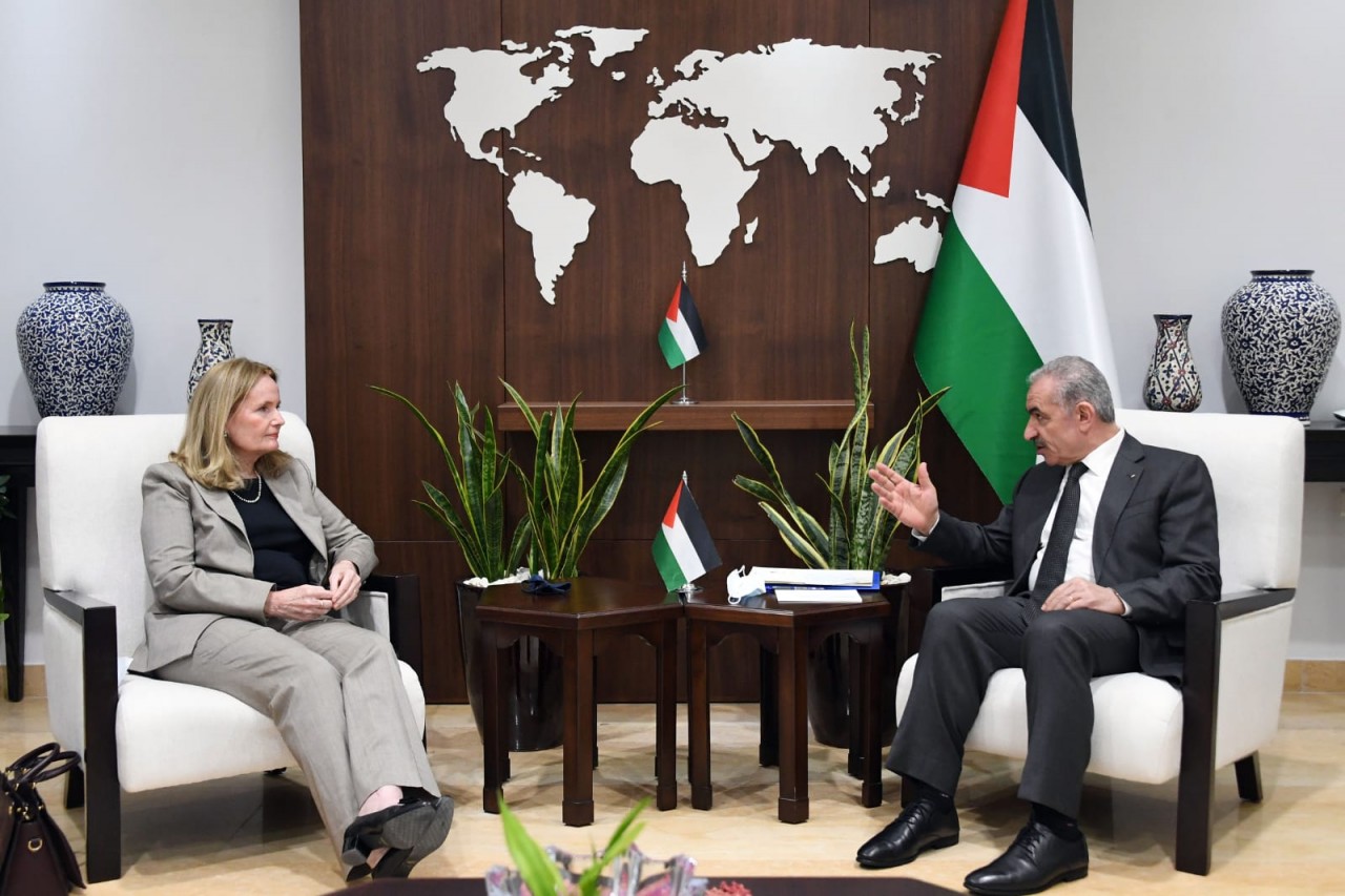 تسلم رئيس الوزراء الفلسطيني الدكتور محمد اشتية، من القنصل البريطاني العام في القدس ديان كورنر، تقريراً ممولاً من المملكة المتحدة حول السياسة المتعلقة بتغير المناخ في الأراضي الفلسطينية المحتلة، اليوم الثلاثاء في مكتبه برام الله.