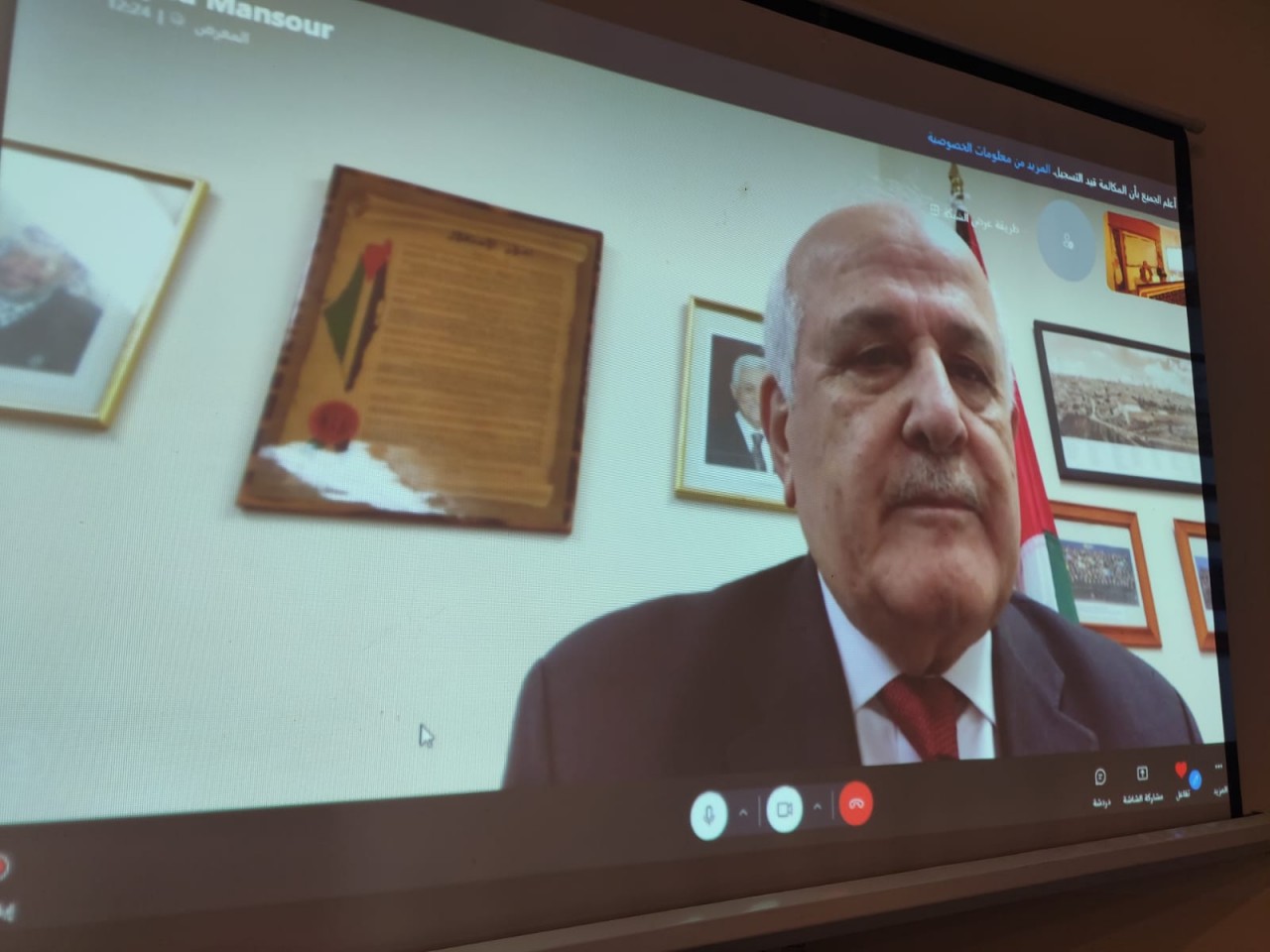 وذكر الدكتور منصور كيف استطاع الشعب الفلسطيني وقيادته تحويل القضية من قضية لاجئين إلى قضية سياسية، مضيفًا: "أصبحنا نستطيع مخاطبة العالم بشكل مباشر، بهدف تعزيز الرواية الفلسطينية العادلة".