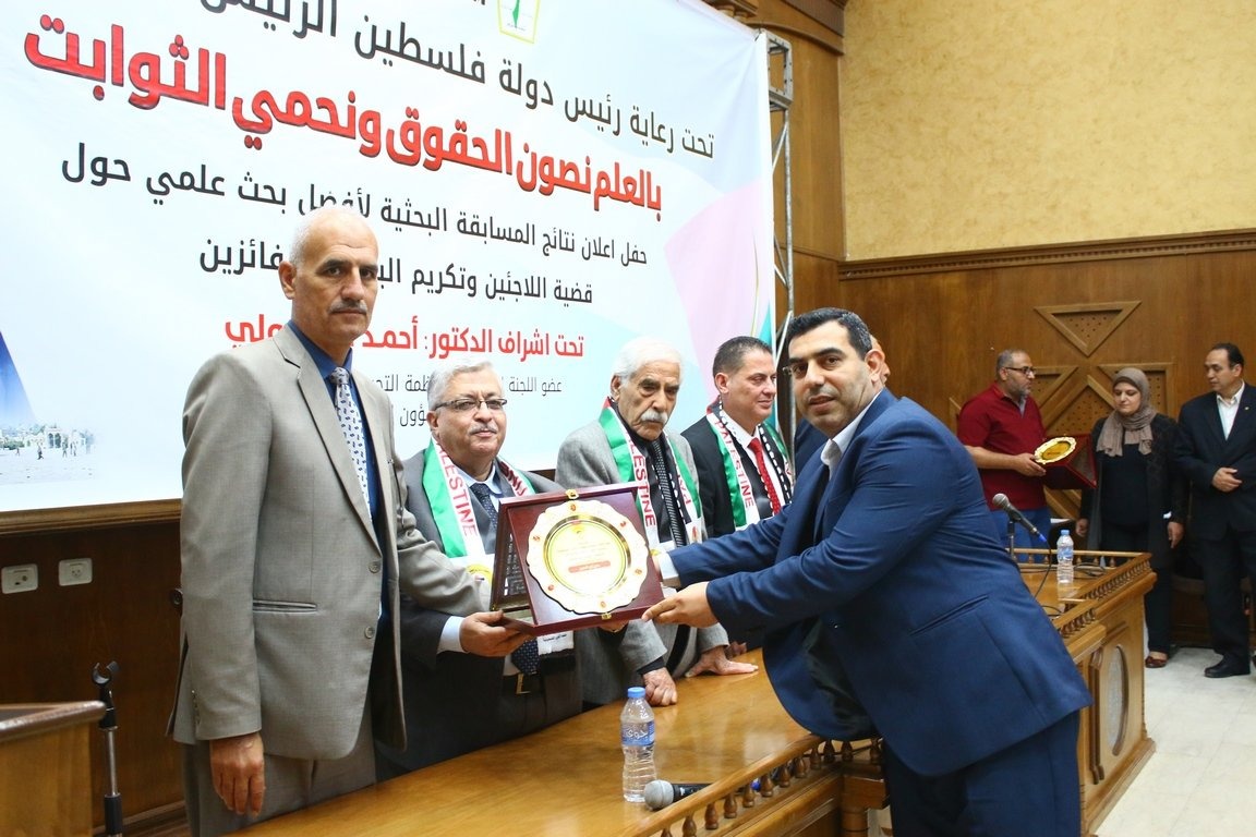 وثمن جهود الباحثين الذين قدموا ابحاثاُ محورية ومهمة تصب في خدمة قضية شعبنا العادلة قضية اللاجئين وحقهم المشروع في العودة الى ديارهم طبقاً لما ورد في القرار 194.