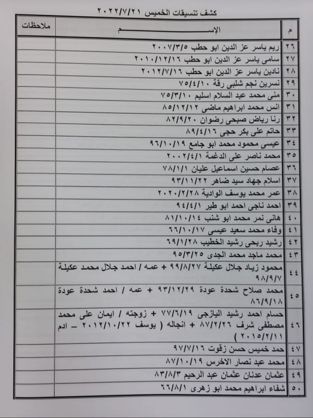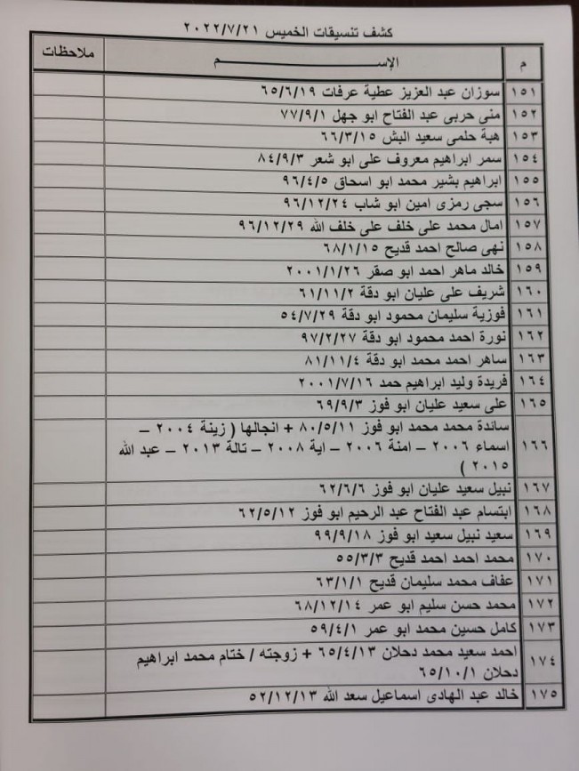 أعلنت الهيئة العامة للمعابر والحدود بوزارة الداخلية بغزة عن وصول كشف "تنسيقات مصرية" للسفر عبر معبر رفح البري يوم الخميس (21 يوليو).