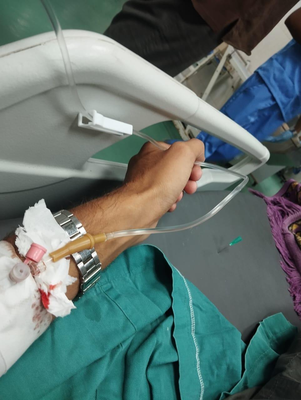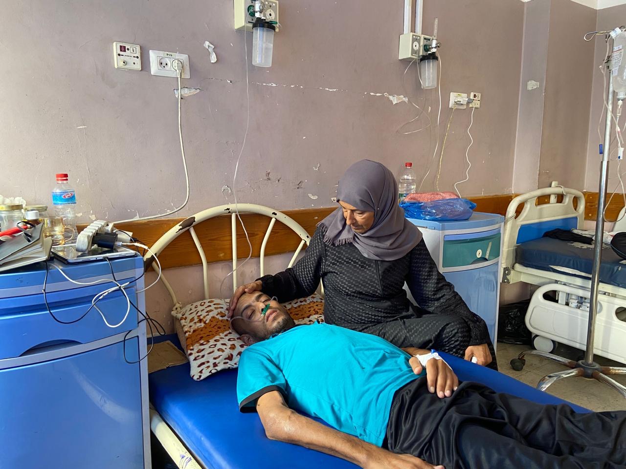 وتضيف:"كان يُجري غسيل كلى منتظم قبل إصابته، أما الآن فيحتاج إلى جلسات غسيل طارئة، مع تبديل البلازما ثلاث مرات أسبوعيًا. ومع استمرار الغسيل وارتفاع الحرارة، أُصيب بفقر دم حاد، فنسبة دمه تنخفض إلى 5، ولا يستفيد من نقل الدم بسبب خلل الصمام القلبي.”